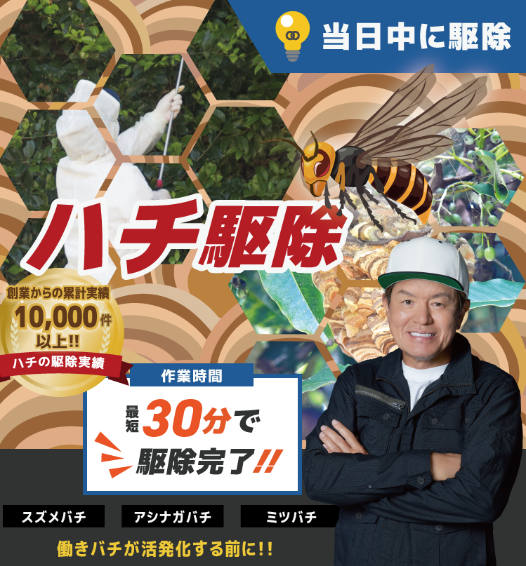 当店はハチ駆除実績が多数ありますので、その経験とノウハウを駆使して、ハチ駆除に全力で挑みます!