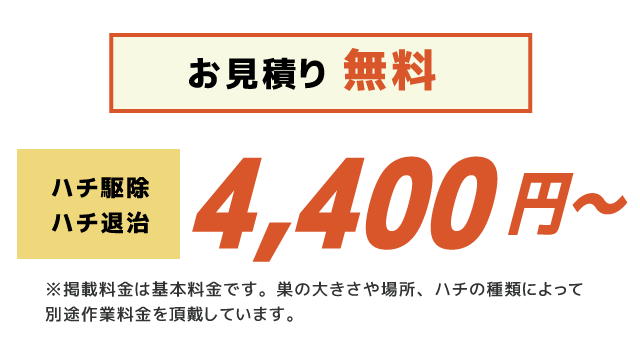 ※記載価格は基本作業料金となります。ハチ駆除料金は巣の大きさや場所によって異なります。