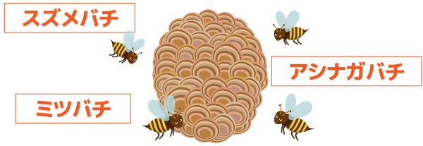 もっとも危険なのはスズメバチです。しかし、ハチの巣を守るために人間を攻撃してくるのは、ミツバチもアシナガバチも一緒です。